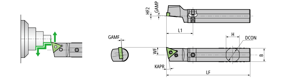 Diagram shows left-hand tool. NOTE: Use a right-handed (R) or non-handed insert.