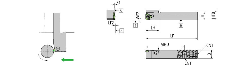 Diagram shows right-hand tool. NOTE: Use a right-handed (R) insert.